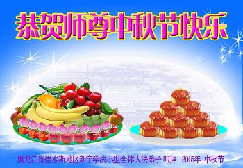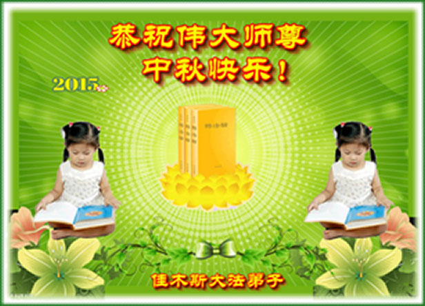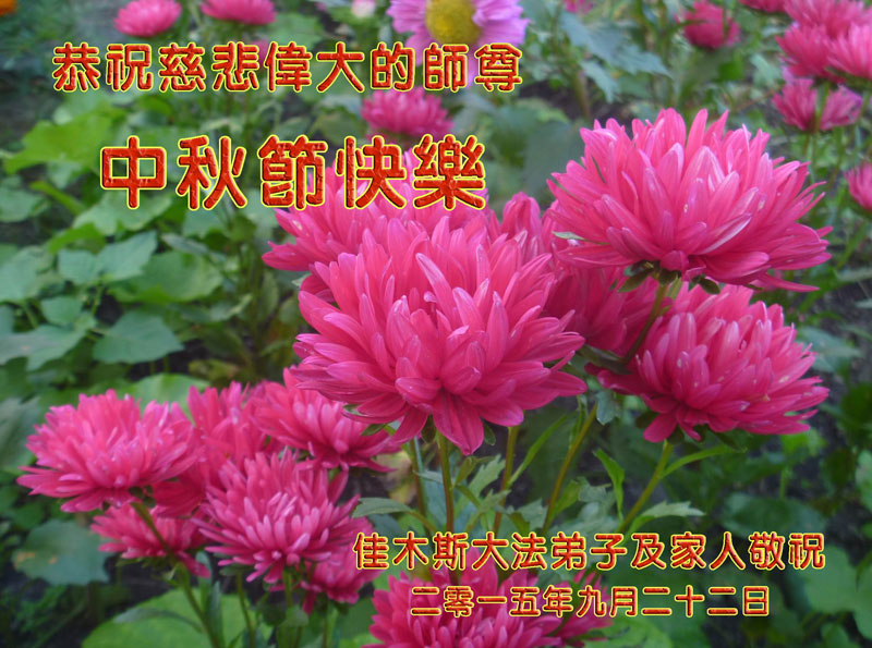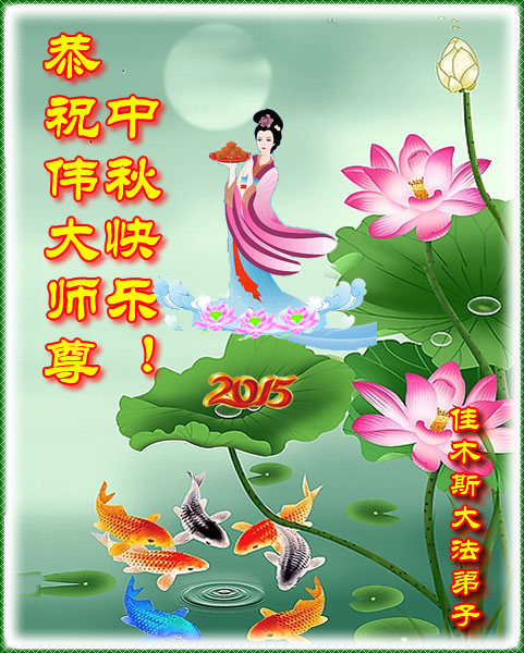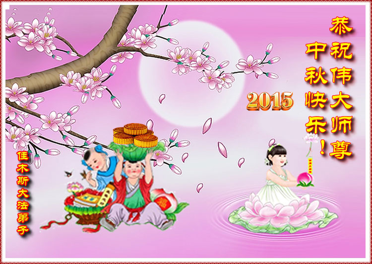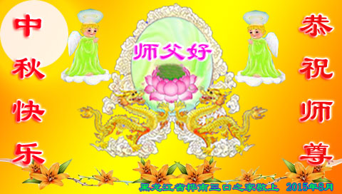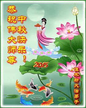 時間轉眼即逝、我們即將迎來二零一五年的中秋佳節,每逢佳節倍思親、在這舉國上下團圓的日子裏,我們全家和全世界大法弟子一道向慈悲偉大的師尊道一聲中秋節快樂!弟子此時的心情用語言無法表達,弟子非常、非常的想念師尊。盼望與師尊團圓的一天早日到來。師尊為弟子承受的太多、太多、弟子無以言表,弟子一定要修好自己、多學法、學好法、做好三件事,多救人、用實際行動回報師尊。