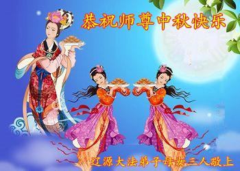 吉林省遼源市大法弟子母女三人恭祝慈悲偉大的師尊中秋快樂!