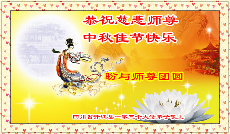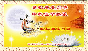 四川遂寧市兩人資料點大法弟子恭祝慈悲偉大的師尊中秋節快樂!