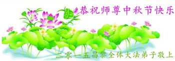 漳南全體大法弟子在中秋之際叩拜師尊!謝謝師尊的救度之恩!多學法,查找我們各自的不足,圓容整體。使訴江大潮順利進行,訴江不是我們的目地,救度眾生是我們的史前大願。