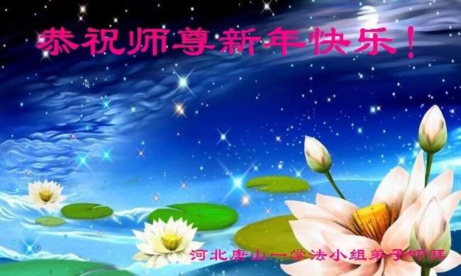 時光似箭,轉眼間一六年過去了,將迎來新的一年。師尊傳天法救大穹,為全宇宙的眾生承受著一切,為了大法弟子的圓滿,為了救更多的眾生,師尊用最大的承受拖延著時間,師尊您太辛苦了!每逢佳節倍思親,新年到了,大陸大法弟子想念師尊!在此佳節之際,曹妃甸區一學法小組全體大法弟子給師尊拜年,遙祝師尊過年好!跪拜叩謝師尊救度之恩!願師尊少一點操勞,多一點欣慰。我們一定牢記師尊教誨,一定抓緊這瞬間即逝的機會,珍惜師尊用最大的承受為弟子、為眾生延續來的時間,盡最大努力修好自己,多救人,做好三件事,精進實修,不辜負師尊的慈悲苦度,圓滿隨師還!
