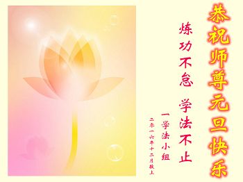 值此新年即將到來之際,弟子及家人祝師父新年快樂!叩謝師父救度之恩,用人世間的任何語言都表達不了師父的浩蕩佛恩,弟子唯有精進實修,多救眾生,讓師父少一些操心,多一些欣慰。