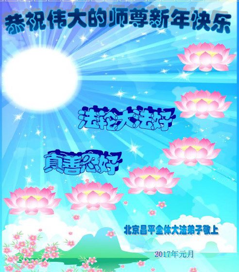 祝慈悲偉大的李洪志師父新年好!2017年的新年即將到來,大法弟子,祝師父新年好,新年快樂,萬事如意!全家幸福!
