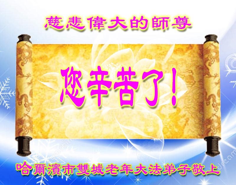 黑龍江哈爾濱南崗區大法弟子恭祝慈悲偉大的師尊節日快樂!
