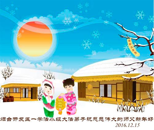 山東煙台開發區一學法小組大法弟子祝慈悲偉大的師父新年快樂!