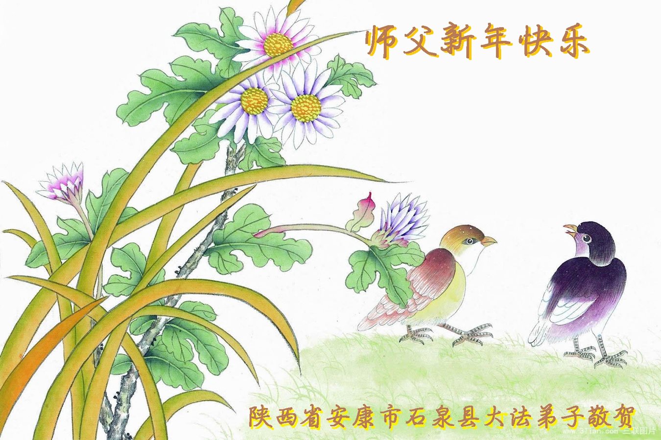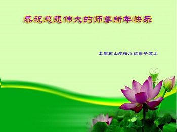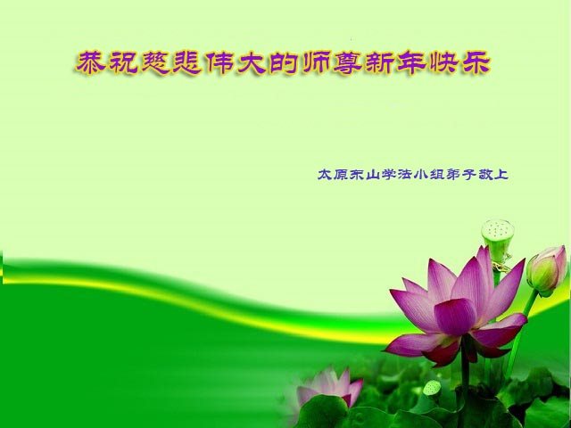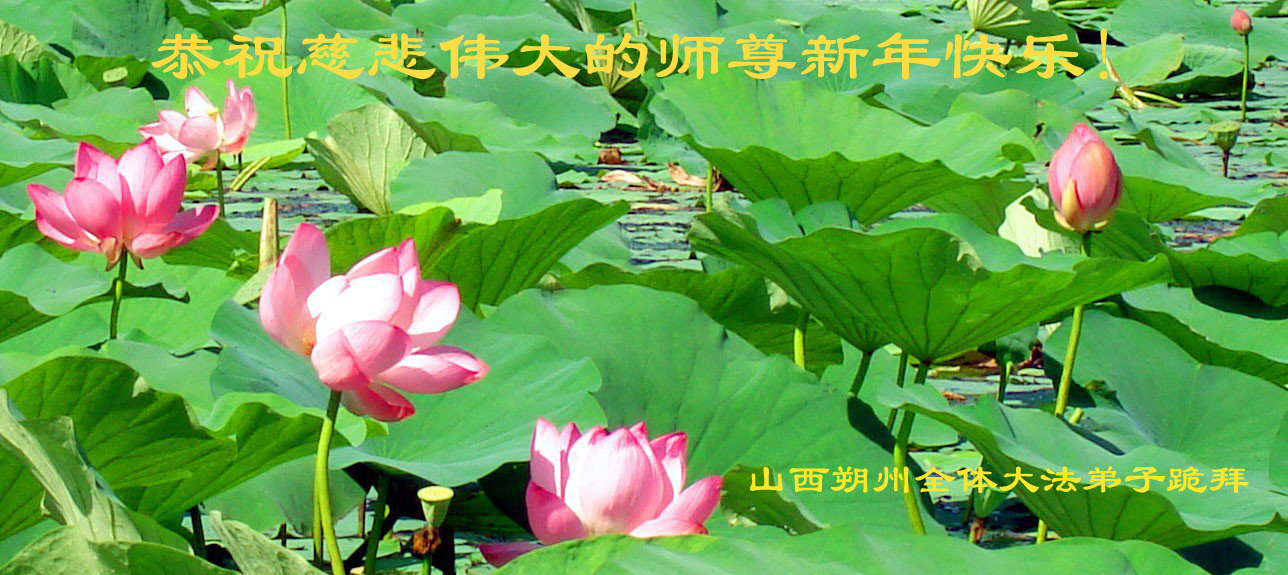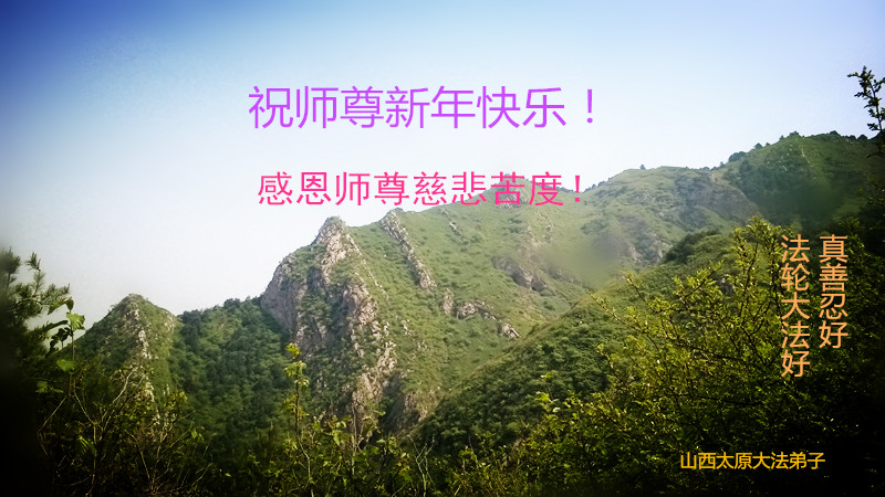 山西省陽泉市平定縣娘子關鎮全體大法弟子,向慈悲偉大的師尊恭祝新年快樂!在新的一年裏,我們一定聽師尊的話,放下人心救度眾生,跪拜師尊。