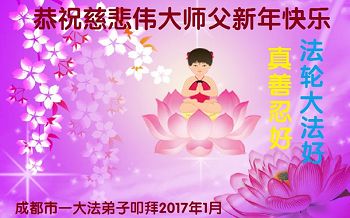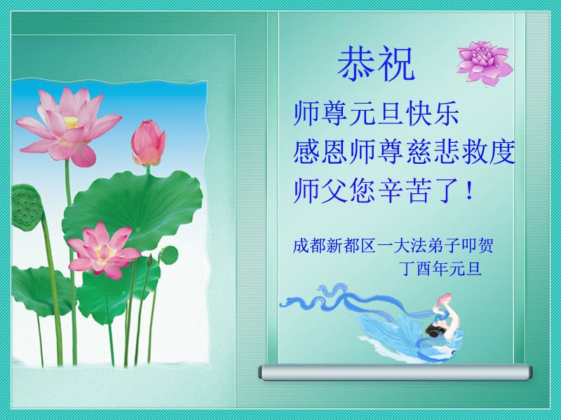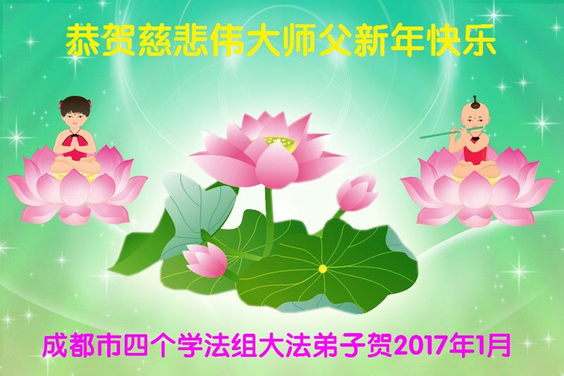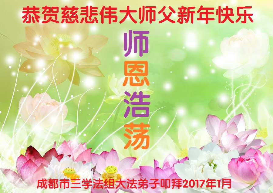 師父啊,新的一年又到了,這過去的日子,師尊對弟子們的慈悲呵護,不知道為弟子們承受了多少,才使弟子們走過了風風雨雨的日子!又迎來了新的一年!讓弟子們用盡人間語言也表達不了對師尊的感恩!為有聽師尊的話做好自己該做的來略表對師尊的感恩!千恩萬謝也表達不了對師尊的救度之恩!只有用我們全家最真誠敬仰的心恭祝慈悲偉大的師尊新年快樂!弟子們一定聽師尊的話做好三件事,跟師回家!