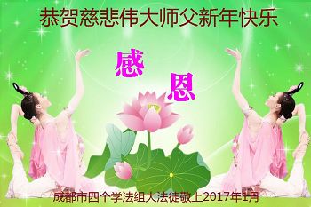 法輪大法好 返本歸真道 同化真善忍 得道上九霄 成都三姊妹拜謝師尊 合十!