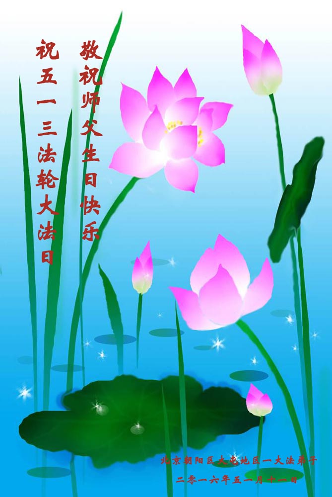 北京朝陽區大屯地區一大法弟子敬祝師父生日快樂!