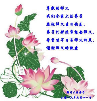 敬祝師父生日快樂!暨「五一三」法輪大法日!在以後的日子裏,不管多艱難,弟子一定跟師父回家。