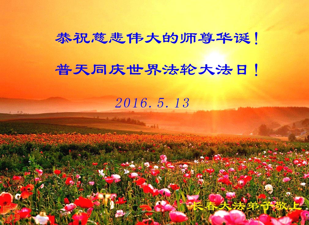 我們寧晉縣全體大法弟子祝賀5.13 世界法輪大法日。恭祝師尊生日快樂!我們要珍惜師父用巨大的承受延長來的時間,抓緊做好三件事,精進、精進、再精進。多救人,完成我們的責任與使命。