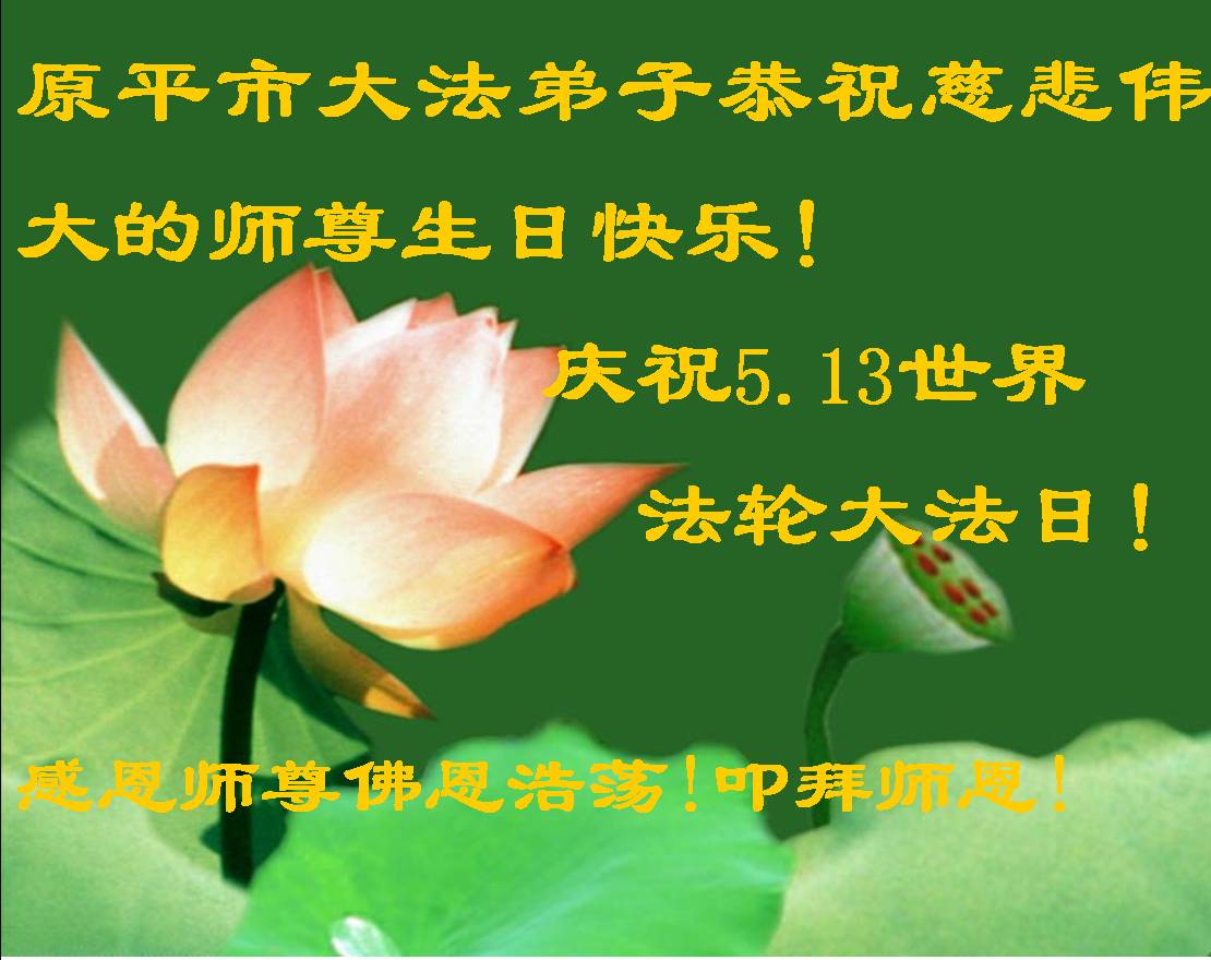 山西省忻州市原平市大法弟子恭祝慈悲偉大的師尊生日快樂!慶祝5.13世界法輪大法日!