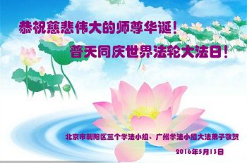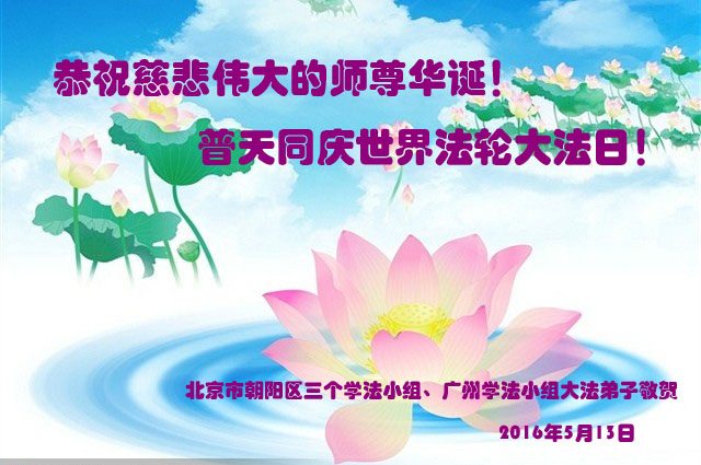 北京市朝陽區三個學法小組、廣州學法小組大法弟子恭祝慈悲偉大的師尊華誕快樂!