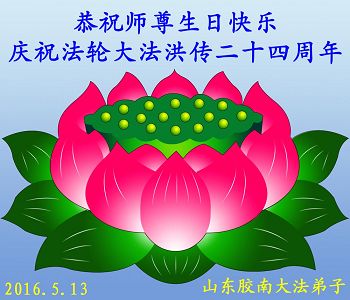 山東省青島市膠南市大法弟子慶祝大法洪傳二十四週年!恭祝師尊生日快樂!