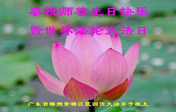 廣東省梅州市梅江區四位大法弟子恭祝師尊生日快樂!暨世界法輪大法日!