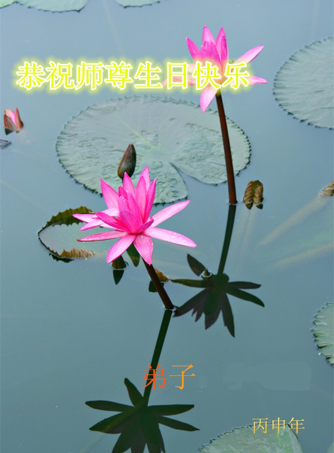在這暫短的人生當中,弟子有幸有緣與師尊同在一世,每一天都在師尊的佑護下成長。師尊用心看護著我、愛護著我。弟子每天捧起書學法是我最幸福快樂!的時光。身心沐浴在佛光普照中。師尊給予我健壯的體魄、慈悲包容的心。師尊時時刻刻在我身邊呵護著我,撫我走正路,讓我知道人生的真正意義,返本歸真,做濁世的一朵淨蓮。用盡人間的語言也無法表達心底對師尊的感恩之心。在師尊生日之際,弟子恭祝師尊生日快樂!感謝師尊慈悲苦度!弟子唯有精進、努力修好自己、走正師尊安排的路,跟師尊圓滿回家。
