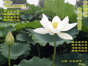 修煉方知大法好,修煉倍覺師父親。用盡人間最美好的語言,都讚不出師父您的偉大;用最動聽的歌都唱不出師父對弟子和世人的慈悲救度。弟子感謝師父的救度之恩。在正法最後的時間裏,我們走正、走穩最後的路,做好三件事,少叫師父操心。堂堂正正的迎接師父回大陸,迎接在中國大地出現的普天同慶、同祝、同頌大法和師父的這一天。我們要精進、再精進,修成正果報答師父的慈悲救度!