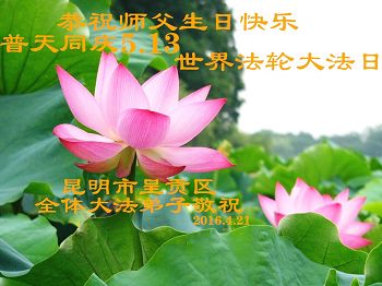 在全球同慶師尊生日及全世界法輪大法日的喜慶的日子裏,我們昆明全體大法弟子一定緊跟師尊的大法進程,修好自己,做好三件事,急師尊所急,放下人的心,多救人是給師尊最大的獻禮!也是弟子們的最大的心願,唯有精進報師恩!