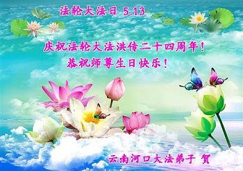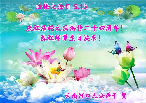 雲南河口大法弟子恭賀法輪大法洪傳二十四週年!恭祝師尊生日快樂!