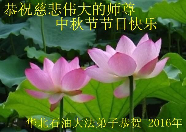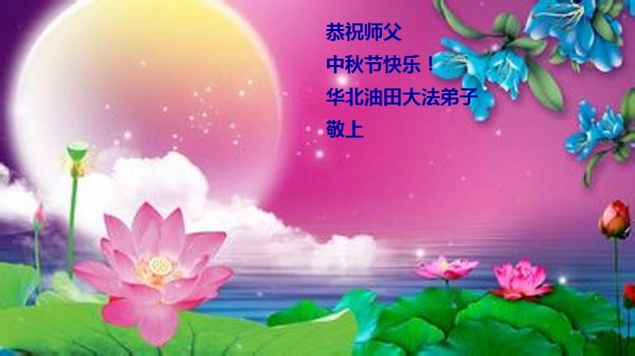 在中秋佳節來臨之際,我們南堡開發區全體大法弟子向慈悲偉大的師尊送上中秋問候,祝願慈悲偉大的師尊中秋快樂!感謝師尊的慈悲苦度。我們要在這助師正法的最後時刻,聽師父的話,學好法,多學法,修好自己,整體圓容、配合,多救眾生。 「中秋添正念」,圓滿隨師還。