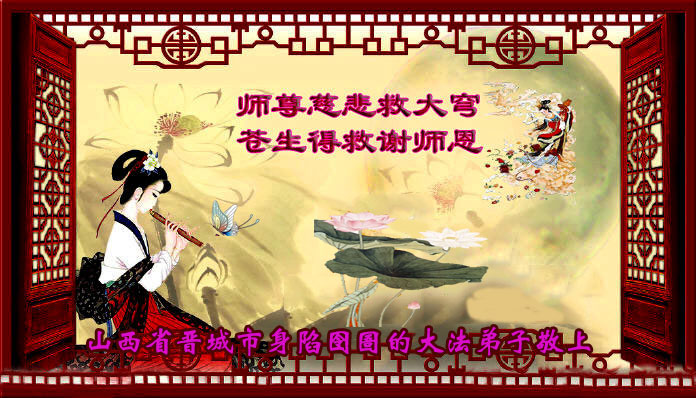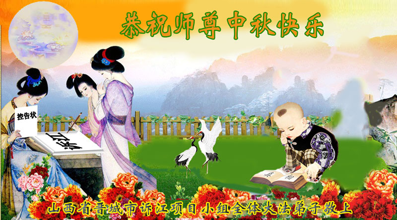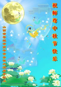今天我們向明慧投遞這小小的便箋,讓明慧幫我們轉達最深的祝願,山西省陽泉市平定縣全體大法弟子齊聲祝願我們慈悲偉大的師父中秋快樂,我們由衷說一句師父節日好!師父辛苦了!盼師父早日回國!