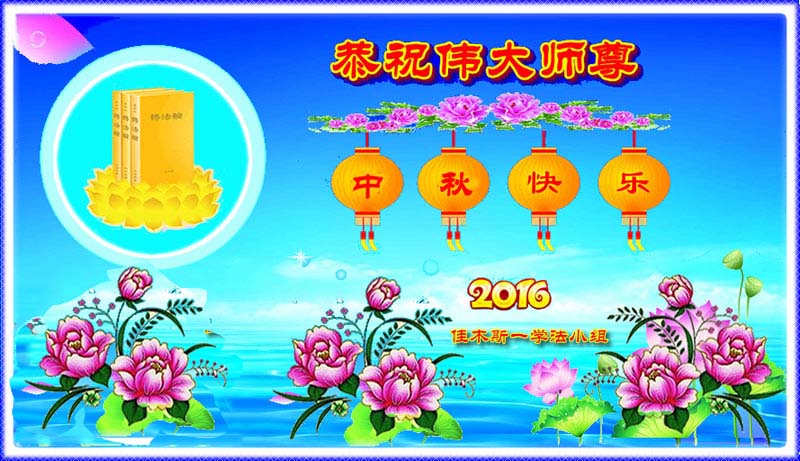 弟子在這裏向恩師道一聲:師父,您辛苦了,弟子想您呀,在過幾天就是中國傳統節日中秋節了,在我們中國這一天是象徵團圓的日子,我們兩個學法小組全體大法弟子衷心恭祝:師父,中秋節快樂!感恩師父一路呵護,弟子們急切盼望師父早一天回到家鄉和弟子們團聚。我們堅信這一天不會太遠。正法洪勢在師父的一再延長中已走到最後,弟子一定謹遵師父教誨,在今後所剩不多的日子裏多學法,學好法,做好三件事,實修再精進,向內找修好自己,多救人以報師恩。