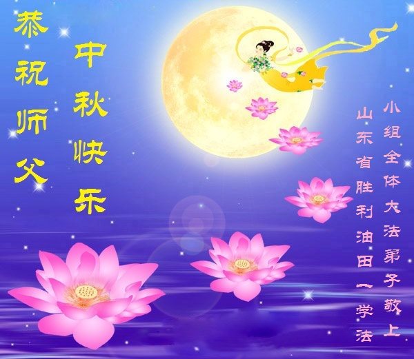 山東省勝利油田一學法小組全體大法弟子恭祝師父中秋快樂!