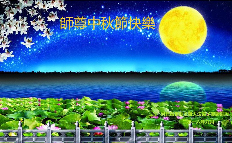 中秋佳節倍思親,越到過年過節的時候,中國大陸的大法弟子就越想念師尊,我們知道師尊為了宇宙眾生都能得救,為了弟子們都能圓滿,吃盡了無數的苦,承受著巨大的業力,弟子們無以為報,我們只有做好三件事,珍惜師尊用巨大的付出延續來的時間裏搶人、救人、多救人,我們知道時間就是生命,我們決不辜負師尊的慈悲苦度,同時修好自己,圓滿隨師還。