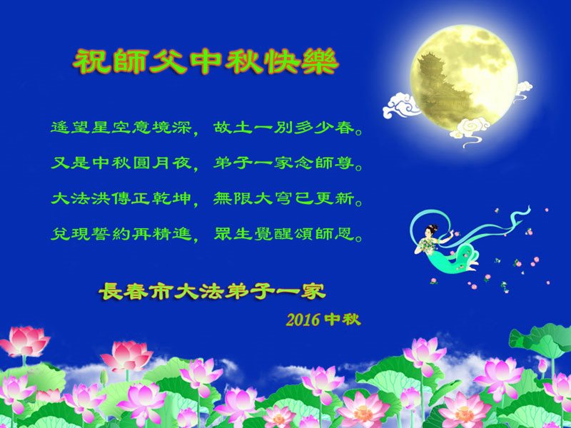 長春大法弟子及家屬想念師尊!恭祝慈悲偉大的師尊中秋佳節快樂!