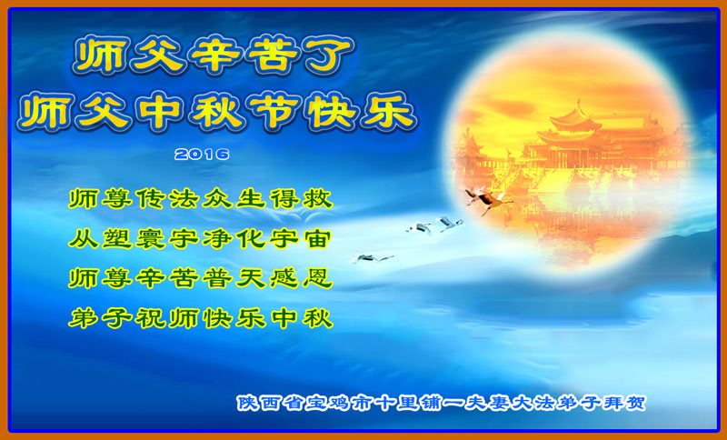 陝西省寶雞市十里鋪一夫妻大法弟子恭祝師父中秋節快樂!