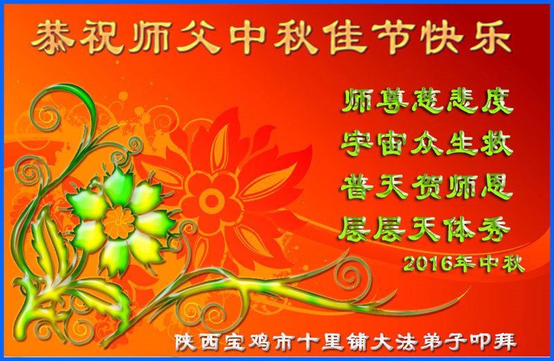 陝西省寶雞市大法弟子恭祝慈悲偉大的師尊中秋節快樂!