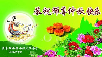 每逢佳節倍思親!中秋佳節即將到來,師尊!我們大陸的,您的弟子萬分的想念您,在此遙寄我們對您的感恩,恭祝您佳節快樂!