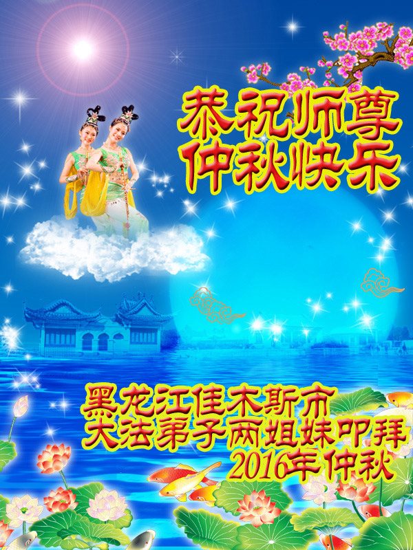 黑龍江佳木斯市大法弟子兩姐妹叩拜恭祝慈悲偉大的師尊中秋快樂!