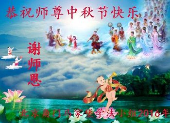 正值2016年中秋月圓之際,弟子們在北京遙望明月,沐浴清風,倍思師尊。感念師尊的慈悲苦度,一路呵護,才有這朗朗乾坤正氣,青青寰宇正明。回家的梯子師尊已搭好,弟子們正奮力攀登,救人的渡船已再造,弟子們將竭力救眾生蹬法船。