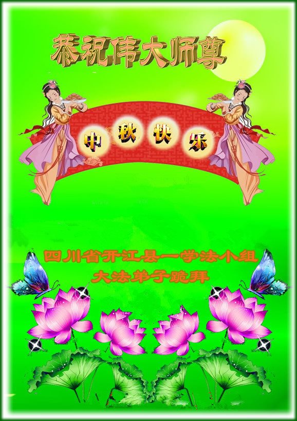 現在我們家庭和睦,孩子孝順,感謝師父!感謝大法!恭祝師父中秋節快樂!