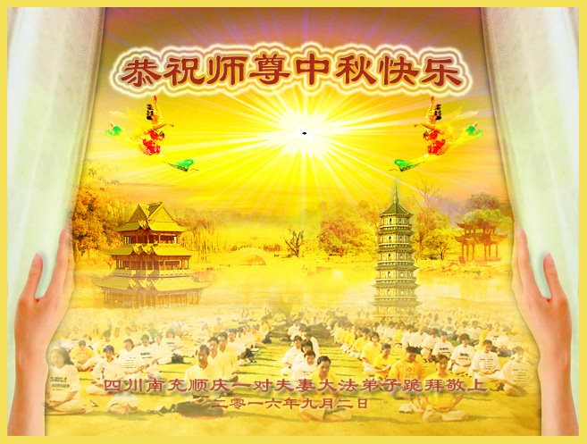 四川南充順慶大法弟子夫妻二人恭祝師尊中秋快樂!