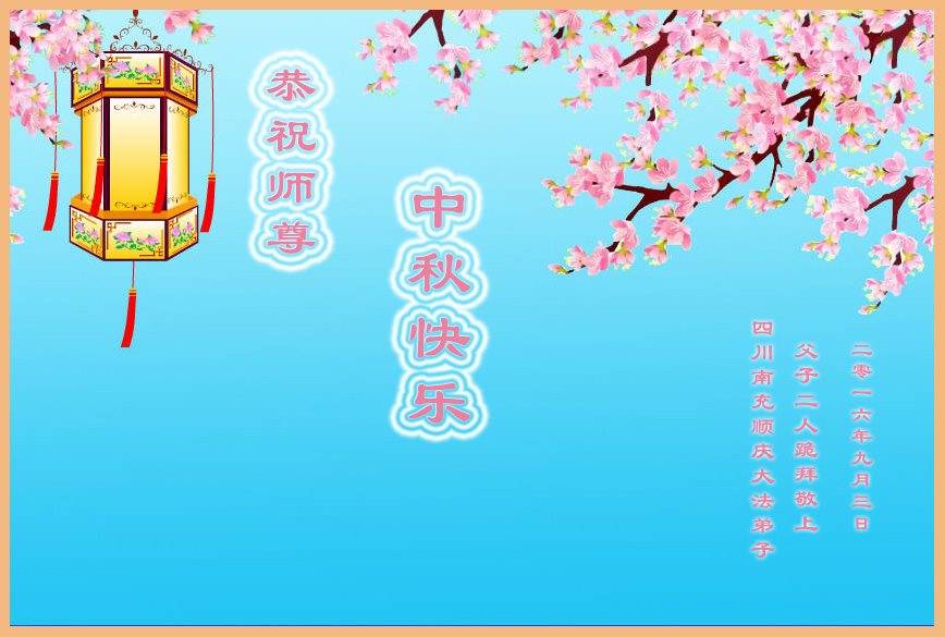四川南充順慶大法弟子父子二人恭祝師尊中秋快樂!