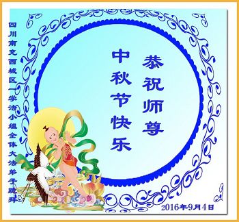 四川南充西城區一學法小組全體大法弟子恭祝師尊中秋節快樂!