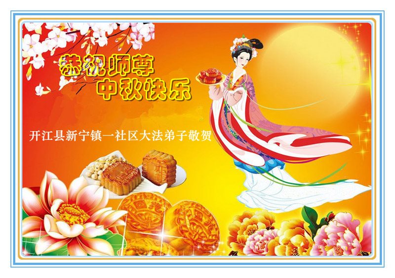 四川省達州市開江縣新寧鎮一社區大法弟子恭祝師尊中秋快樂!