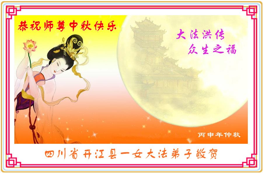四川省達州市開江縣一大法弟子女兒敬祝慈悲恩師中秋節快樂!