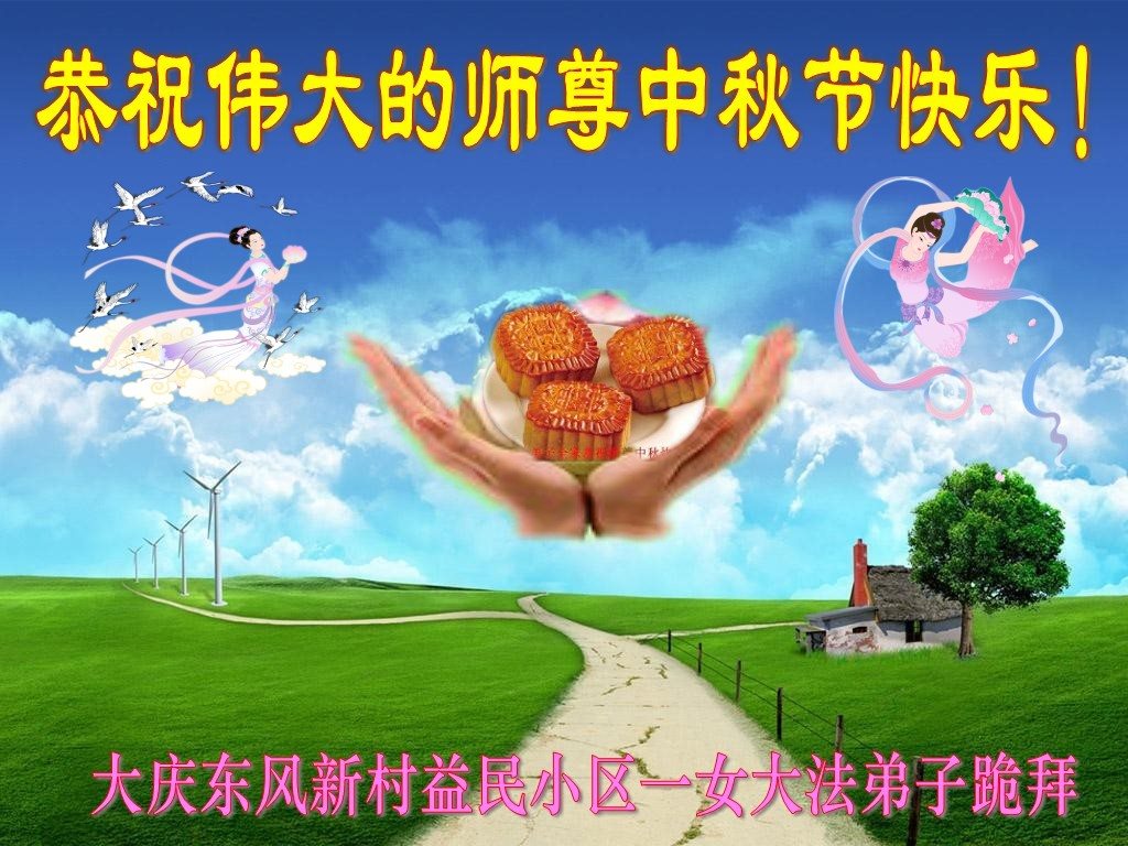 黑龍江省大慶東風新村益民小區一女大法弟子恭祝偉大的師尊中秋節快樂!