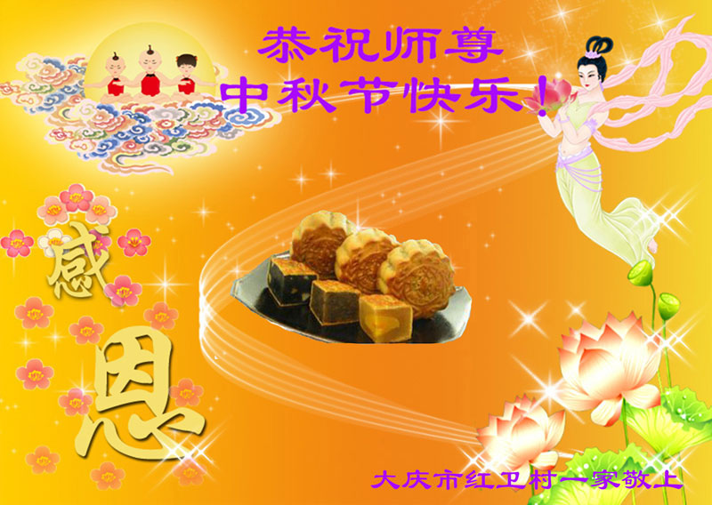 黑龍江省大慶四位大法弟子及其親屬恭祝慈悲偉大的師尊中秋節好!