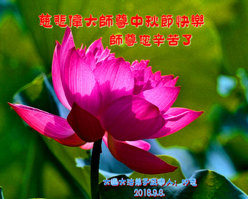 我代表我們全家大法弟子向師父恭賀師父中秋快樂!我們一定要精進實修,跟師父回家。