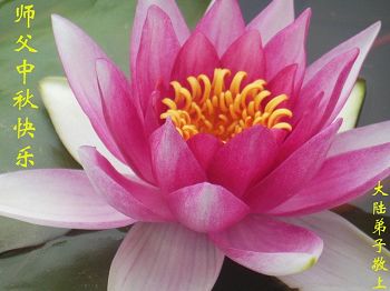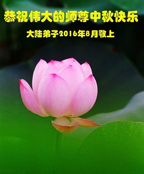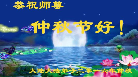又一中秋佳節來臨,大法弟子不忘師父的苦度,大法弟子祝願師父節日好!節日快樂!師父您辛苦了!弟子一定聽師父的話,做個真正的法輪大法好弟子。