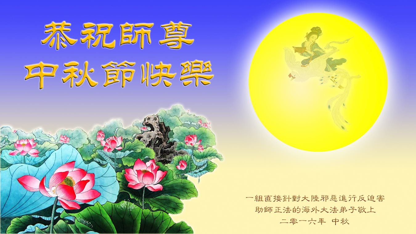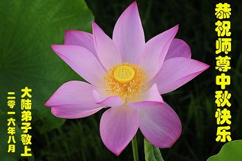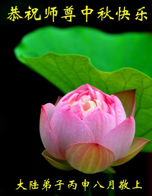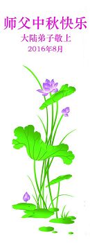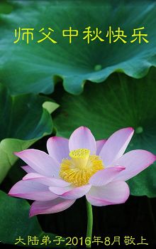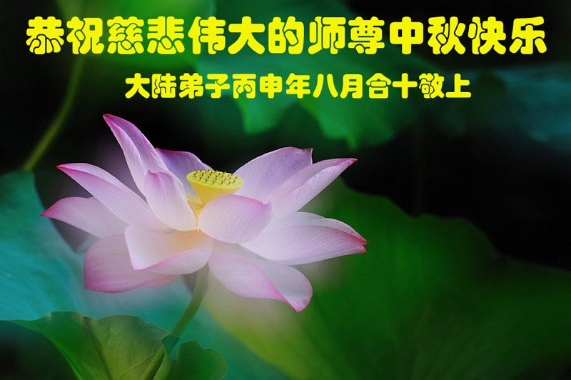 您為弟子們操盡了心。您慈悲的呵護著弟子們,看護著弟子們,弟子們無以報答,弟子們只有做好三件事,以報答師父的慈悲救度。學好法,多去執著,向內找,多救眾生。弟子們恭祝師父中秋快樂!身體健康!萬事如意!