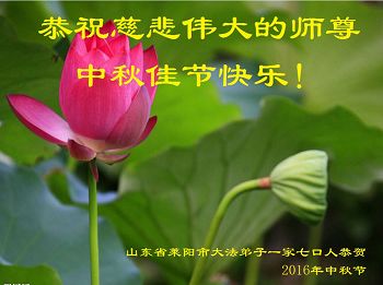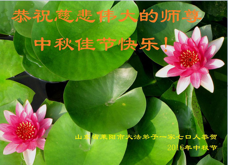 山東省煙台市萊陽市大法弟子一家七口人(一人修煉,其餘人都支持大法)恭祝慈悲偉大的師尊中秋佳節快樂!
