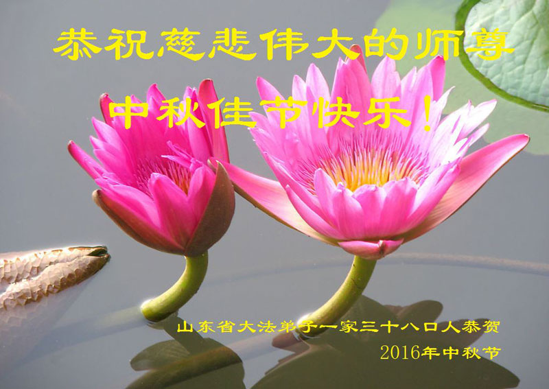 山東省大法弟子一家三十八口人恭祝慈悲偉大的師尊中秋佳節快樂!