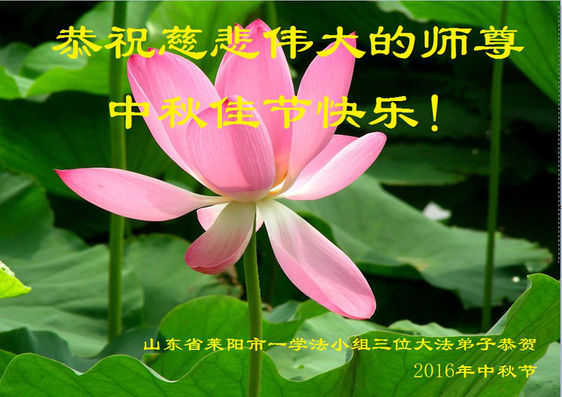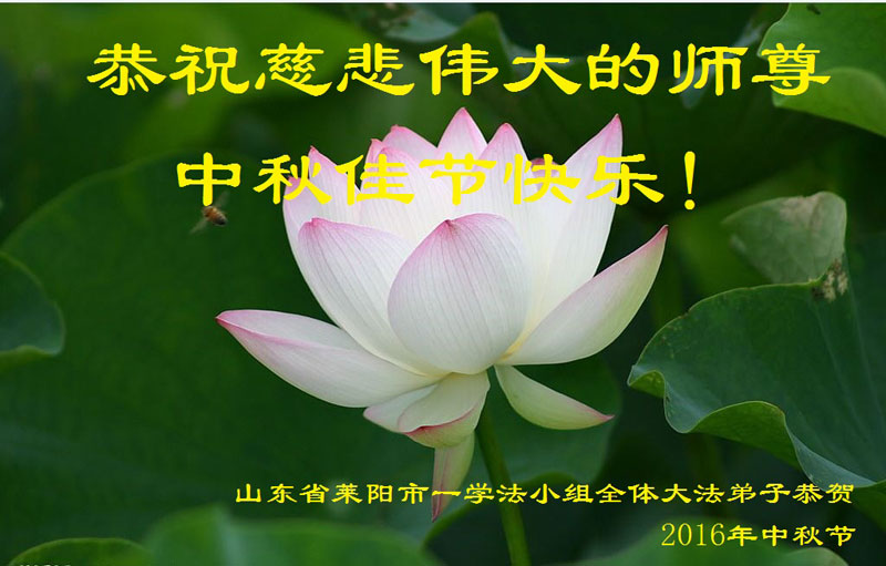 山東省煙台市萊陽市三人學法小組的大法弟子向師尊問好!恭祝慈悲偉大的師尊中秋佳節快樂!