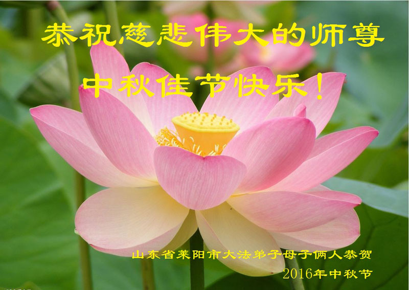 山東省煙台市萊陽市大法弟子母子倆恭祝慈悲偉大的師尊中秋佳節快樂!
