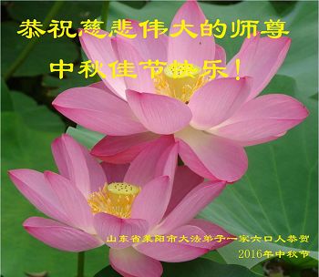 山東省煙台市萊陽市一家六位大法弟子叩拜恭祝慈悲偉大的師尊中秋佳節快樂!